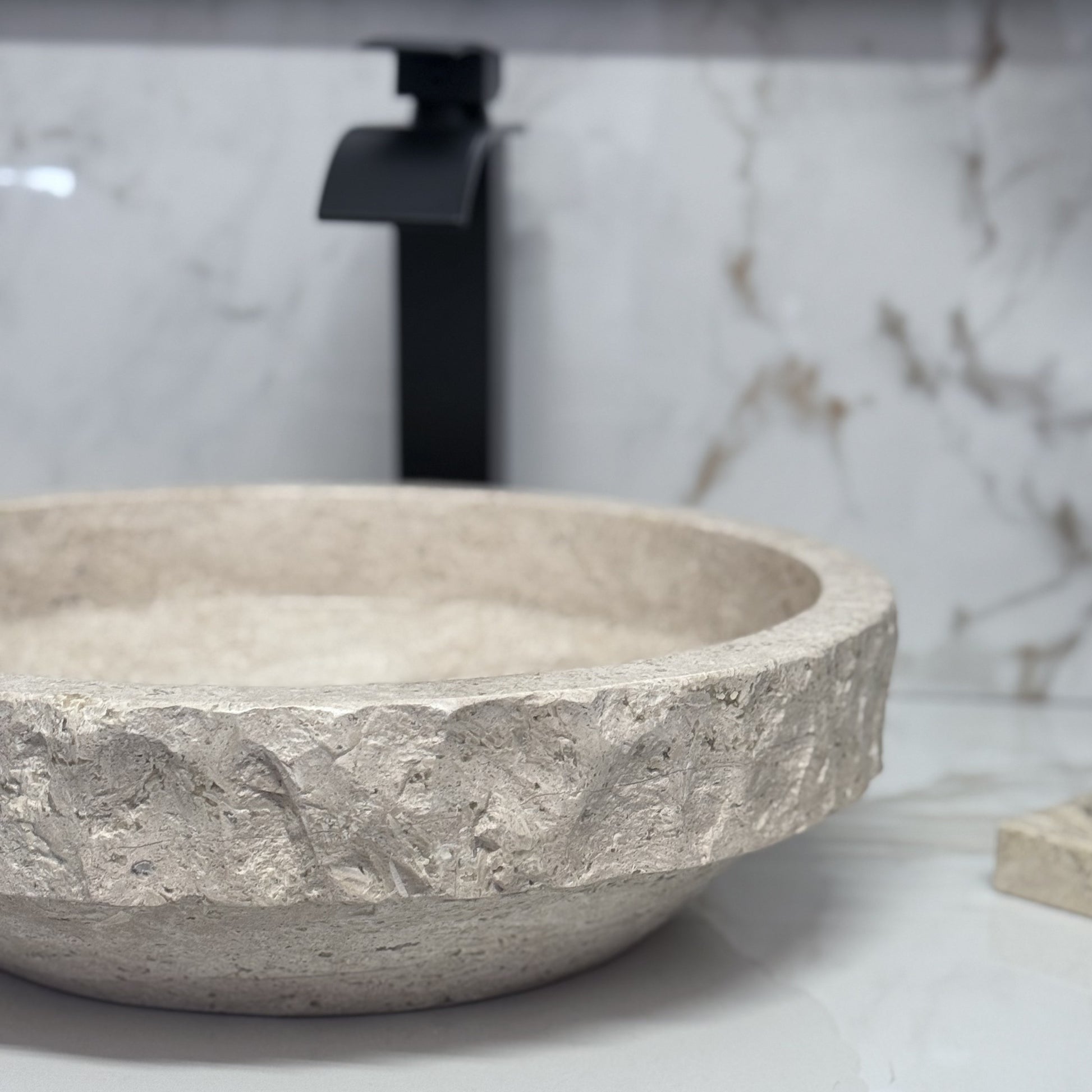 Handcrafted from premium Mexican travertine, this travertine vessel sink isn’t just a fixture—it’s a piece of the earth’s history, bringing raw, untouched elegance into your home.